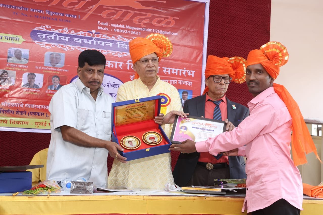 पत्रकार मकसूद शेख आदर्श पत्रकारिता पुरस्काराने सन्मानित