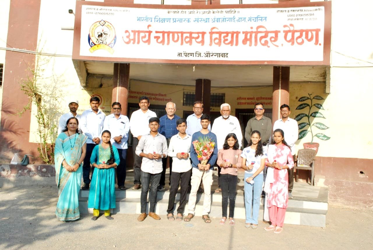 पैठण : फेब्रुवारी/ मार्च 2025मध्ये घेण्यात आलेल्या माध्यमिक शालांत प्रमाणपत्र परीक्षेचा निकाल आज दिनांक 13मे रोजी ऑनलाईन घोषित झाला आहे. या परीक्षेमध्ये आर्य चाणक्य माध्यमिक विद्या मंदिर पैठण या संस्कार केंद्राचा 100 टक्के निकाल लागला असून,