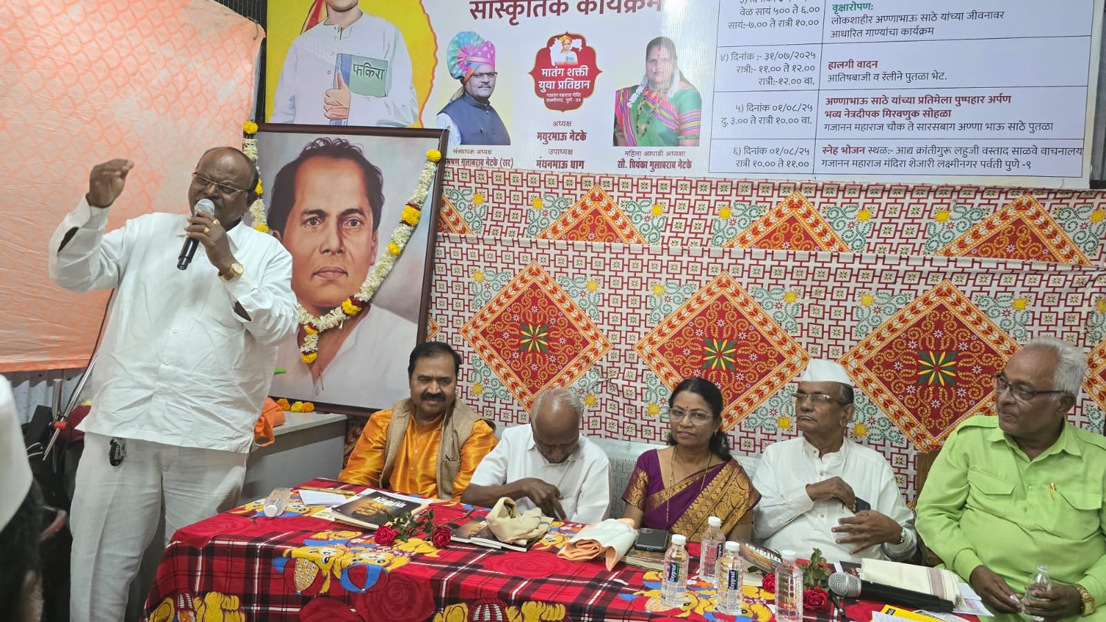 पुणे - येथील मातंग शक्ती युवा प्रतिष्ठान आयोजित लोकशाहीर अण्णाभाऊ साठे जयंती निमित्ताने कविसंमेलन आयोजित करण्यात आले होते. मुख्य आयोजक समाजभूषण पुरस्कार विजेते प्रा. गुलाबराव नेटके, सौ प्रियंका नेटके यांनी सांस्कृतिक कार्यक्रमांचे आयोजित केले होते.