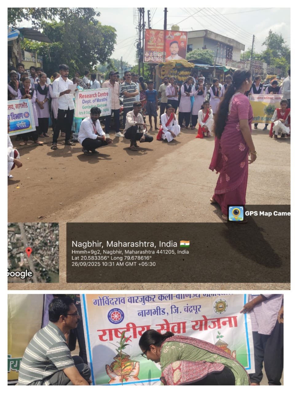 गो. वा. महाविद्यालय नागभीड, राष्ट्रीय सेवा योजना स्थापना दिन सप्ताह अंतर्गत "एक पेड माँ के नाम" उपक्रमात वृक्षारोपण व देहदान ... विषयावर पथ नाट्य 26 सप्टेंबर 2025 रोज शुक्रवार ला राष्ट्रीय सेवा योजना विभाग व नगर परिषद, नागभीडच्या संयुक्त विधमाने रा...