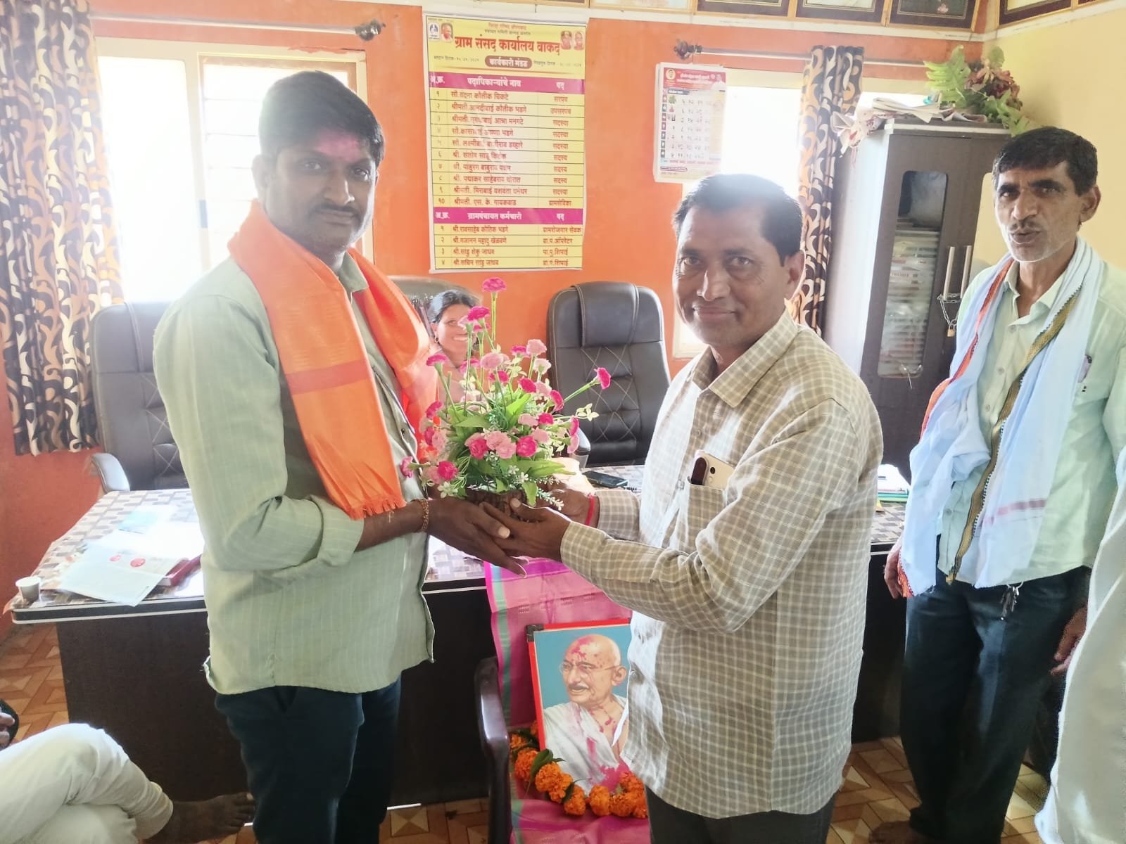 वाकद ता.कन्नड येथील तंटामुक्ती समितीच्या अध्यक्षपदी सामाजिक कार्यकर्ते कृष्णा बोराडे यांची बिनविरोध निवड करण्यात आली आहे. याप्रसंगी सरपंच वंदनाताई चिकटे, उपरपंच लक्ष्मीबाई बाजीराव डव्हारे, रावसाहेब भडगे, कौतिक चिकटे, अण्णा भडगे, विश्वास मन...
