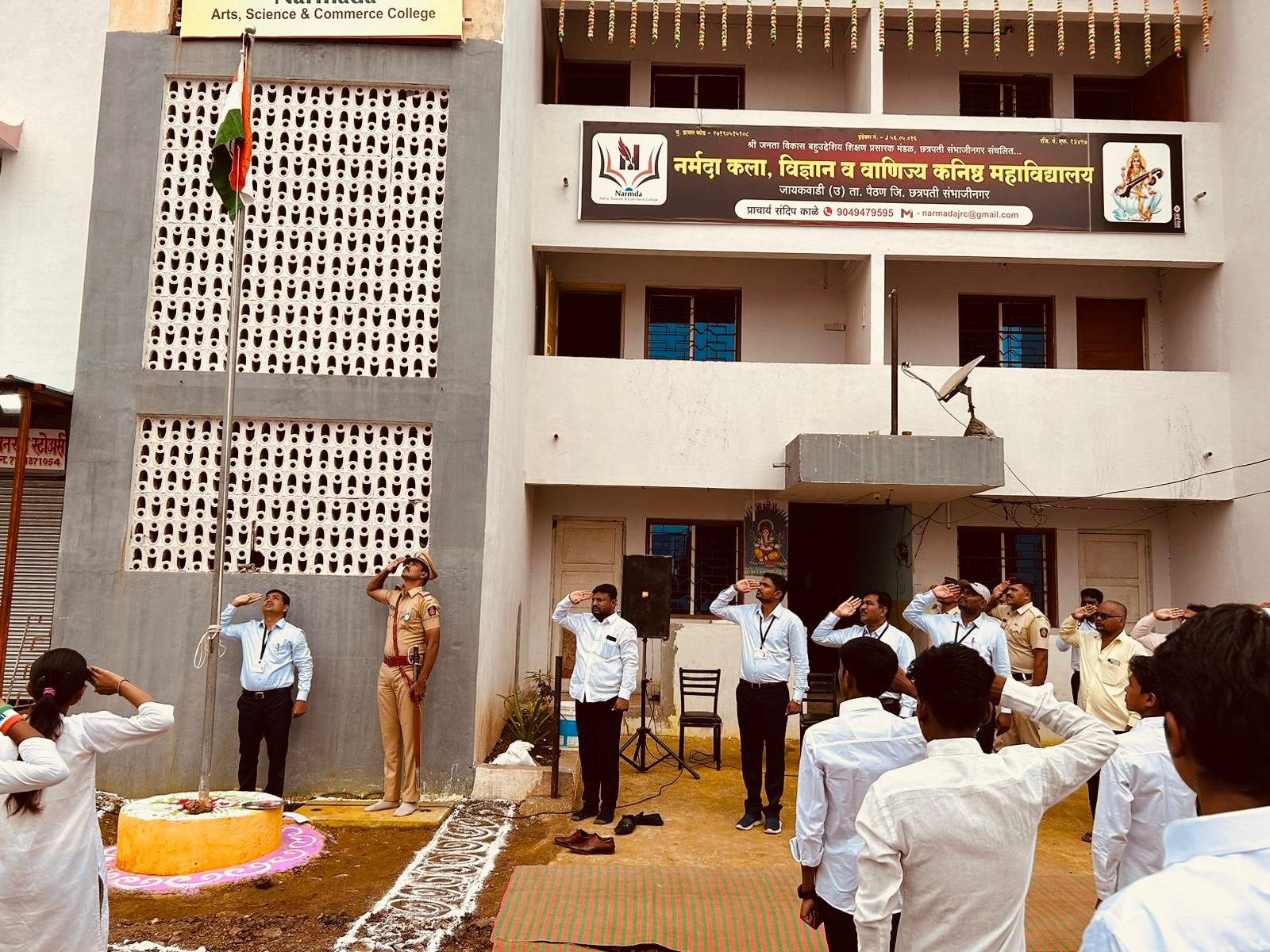 १४ ऑगस्ट २०२५ रोजी स्वातंत्र्याचा अमृत महोत्सव आणि संतश्रेष्ठ ज्ञानेश्वर महाराज यांच्या ७५० व्या जयंतीनिमित्त नर्मदा कला, विज्ञान व वाणिज्य कनिष्ठ महाविद्यालयात सामूहिक पसायदान गायनाचा भक्तिमय सोहळा मोठ्या उत्साहात पार पडला.