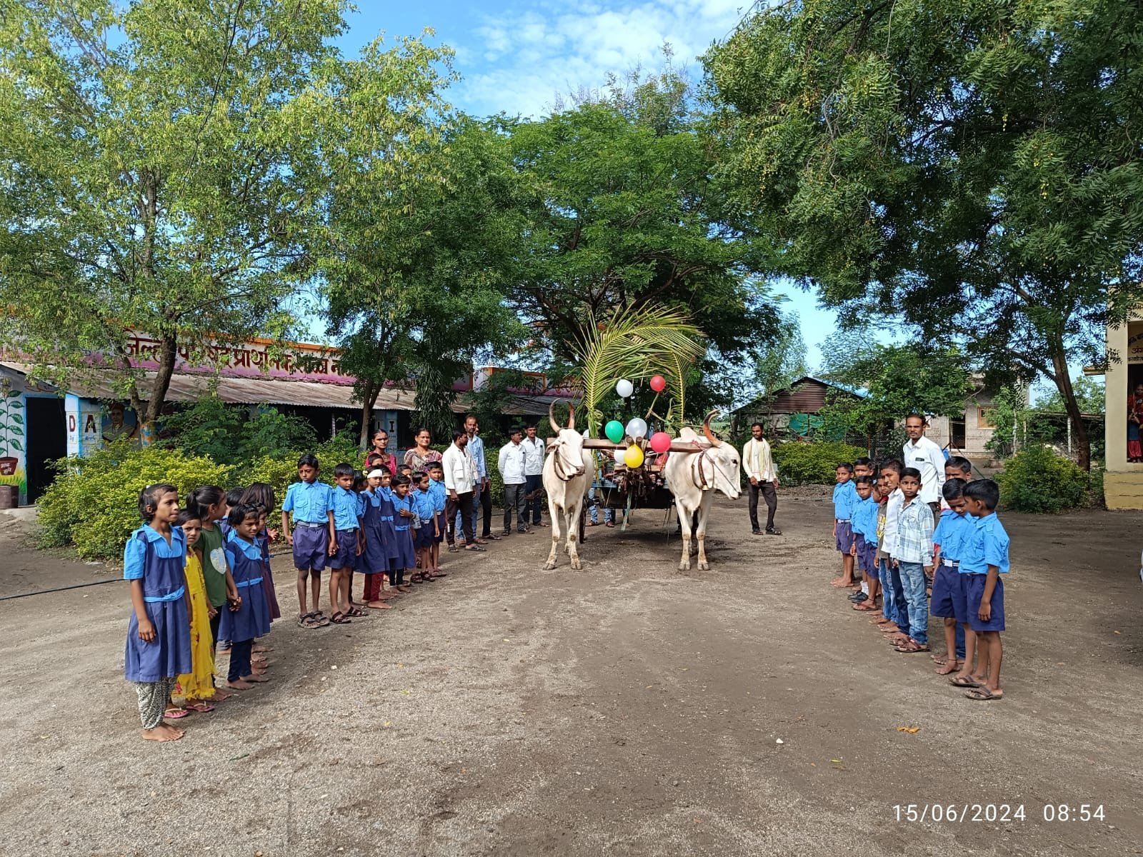 नाटकरवाडी : नवप्रवेशित विद्यार्थ्यांचे बैलगाडीद्वारे मिरवणूकीने स्वागत